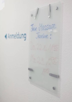 Unsere Dame an der Anmeldung oder Ihre behandelnde Therapeut*in wird Sie in Empfang nehmen.